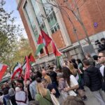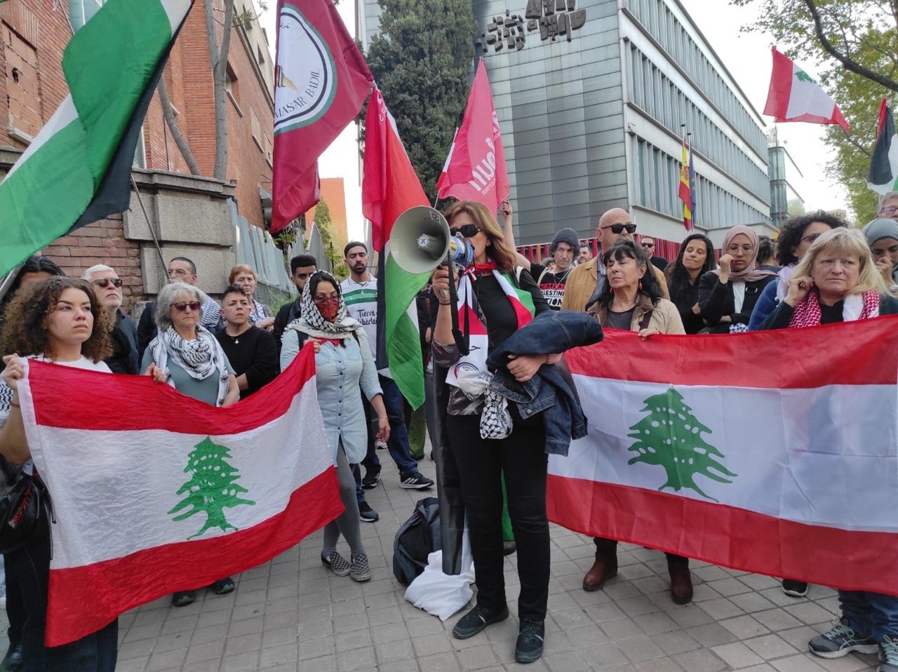 تجمع مئات الأشخاص في مدريد أمام سفارة الكيان الصهيوني، بدعوة من المسار الثوري البديل وصامدون والكرامة وطريق التحرير، للتنديد بالمجازر في لبنان والمطالبة بقطع العلاقات مع الكيان الصهيوني.