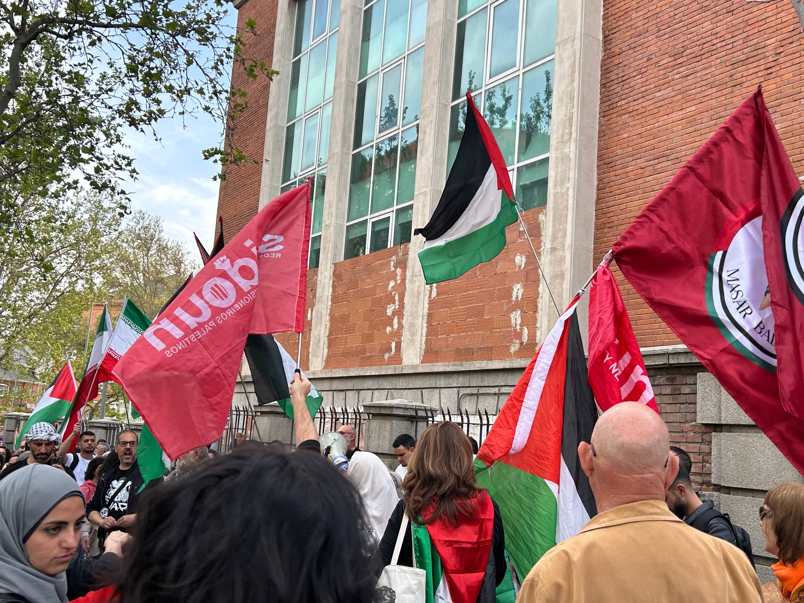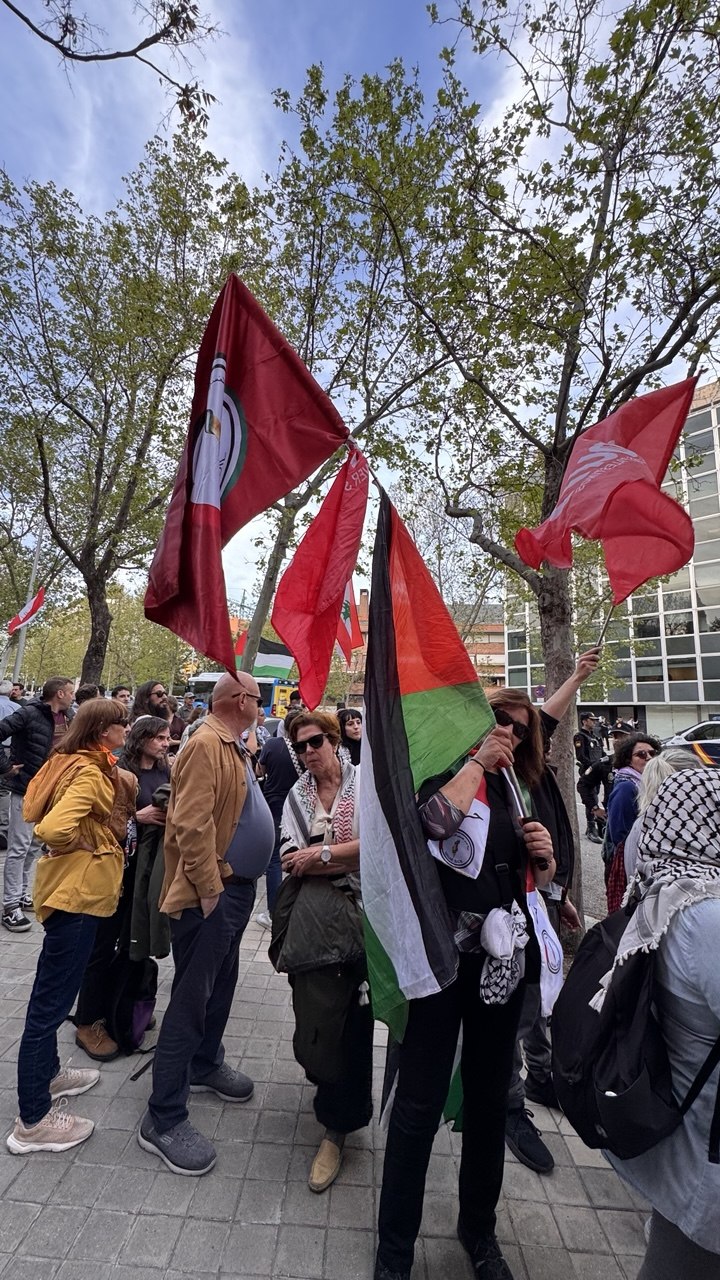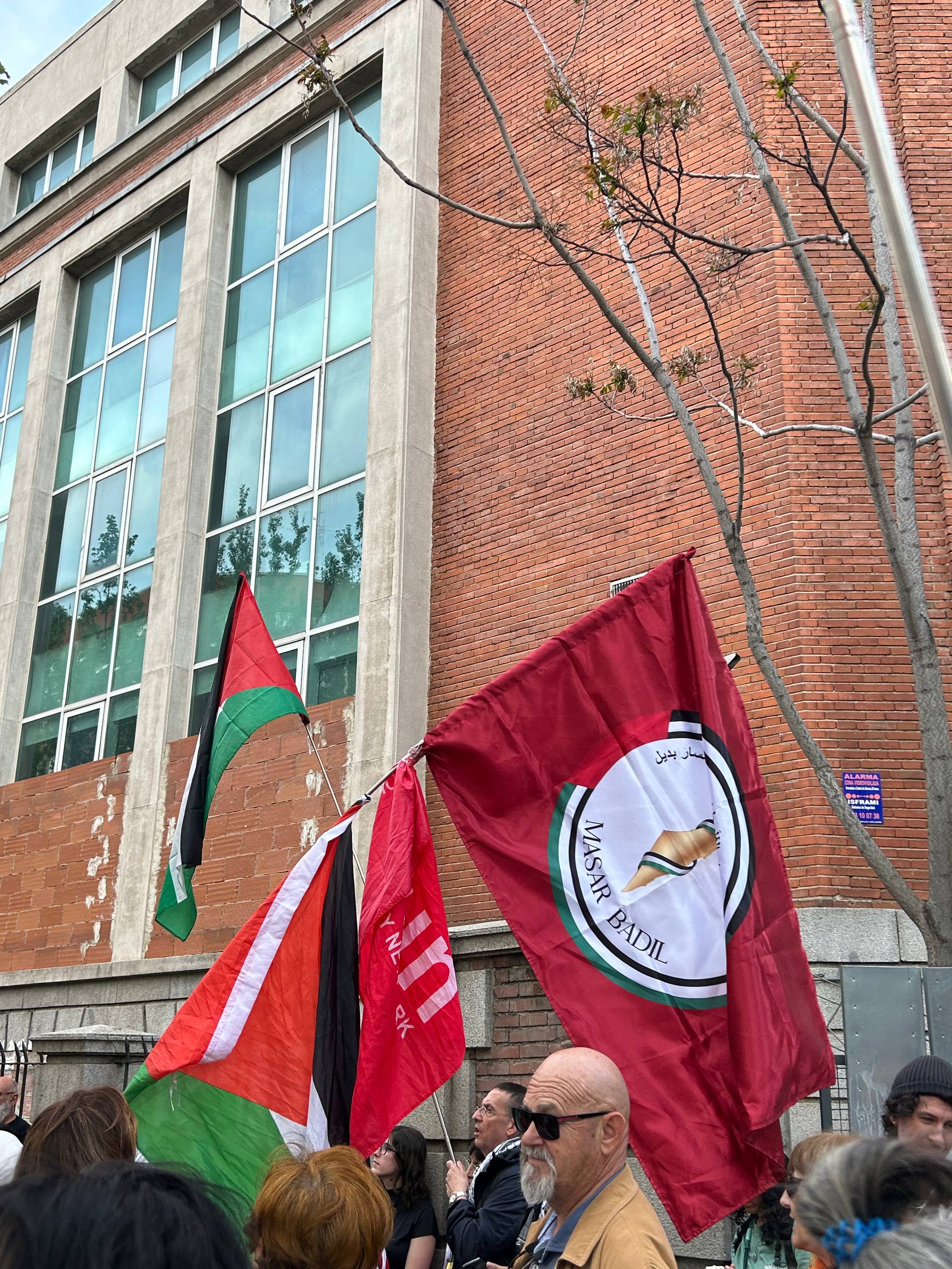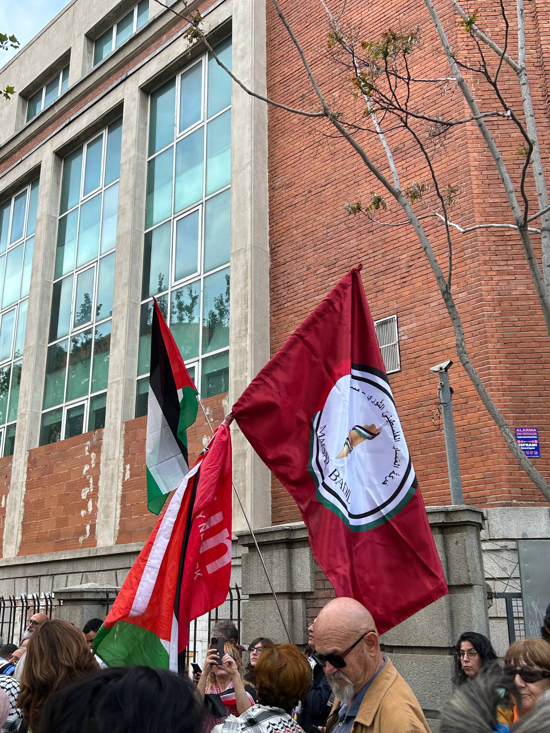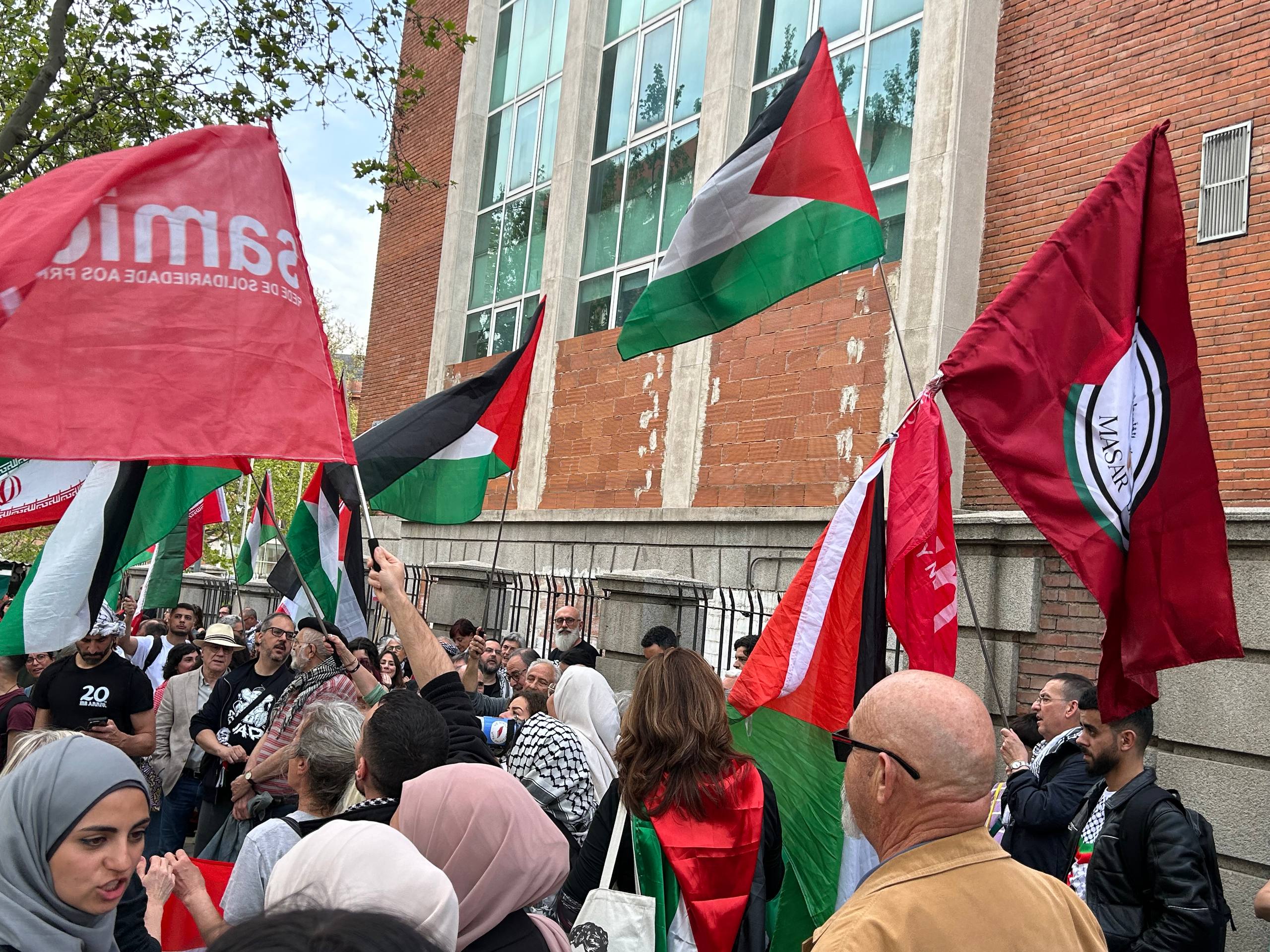 تجمع مئات الأشخاص هذا الأسبوع في مدريد أمام سفارة الكيان الصهيوني، استجابةً للدعوة التي أطلقتها حركة المسار الثوري الفلسطيني البديل، وصامدون، والكرامة، وطريق التحرير.