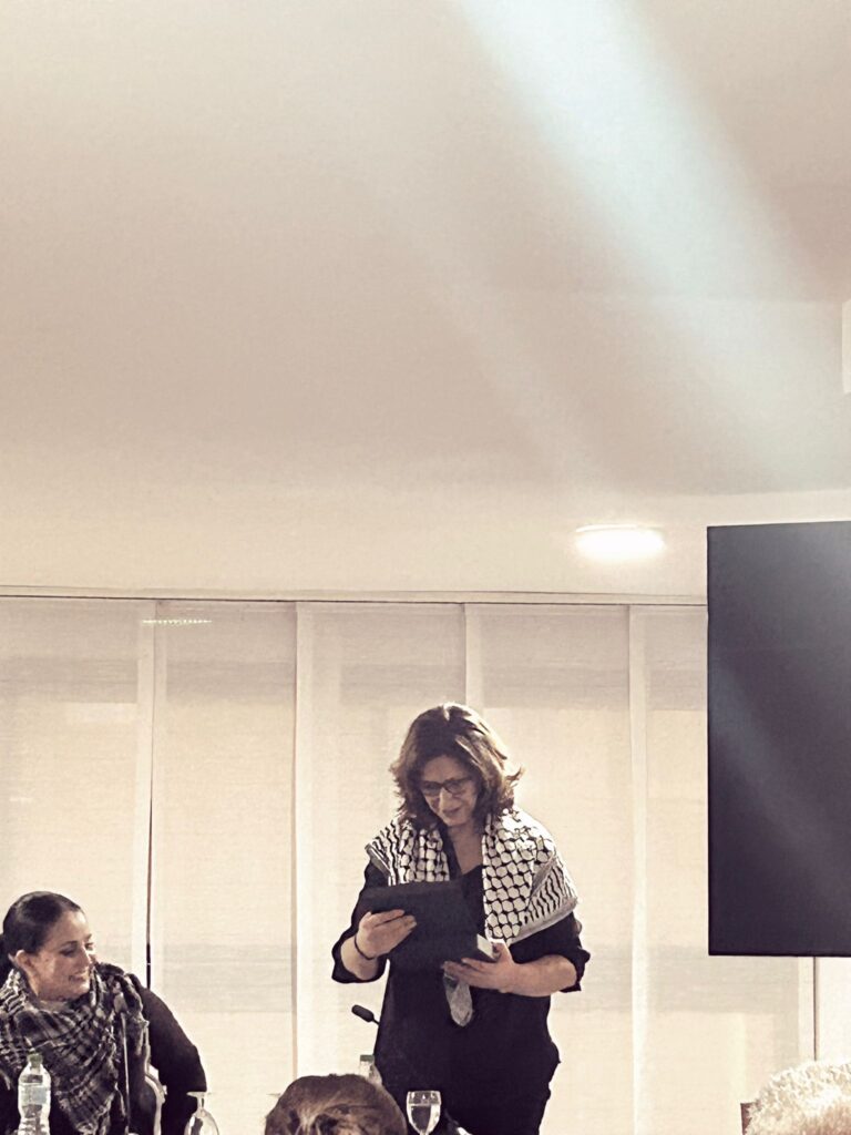 La compañera también alertó sobre los intentos de hacer negocio con la destrucción de Gaza, denunciando los proyectos económicos asociados a estos planes de “paz”, así como el ataque deliberado contra la UNRWA, cuyo papel resulta clave para preservar el registro y los derechos de las personas refugiadas palestinas. Subrayó que la ofensiva contra esta agencia no es casual, sino parte del intento de borrar el derecho al retorno y cerrar definitivamente el expediente de los refugiados.